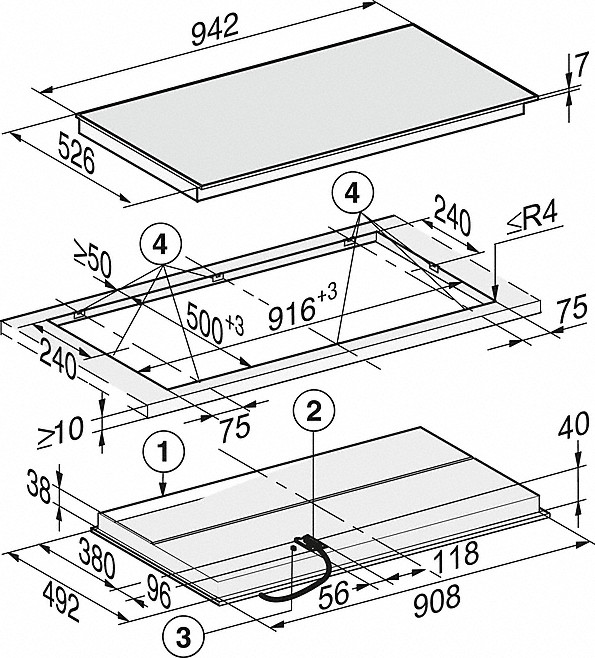 i Характер огранки фаски на внешней стороне варочной панели. Металлические рамки предотвращают забивание монтажных швов крошками и пылью.