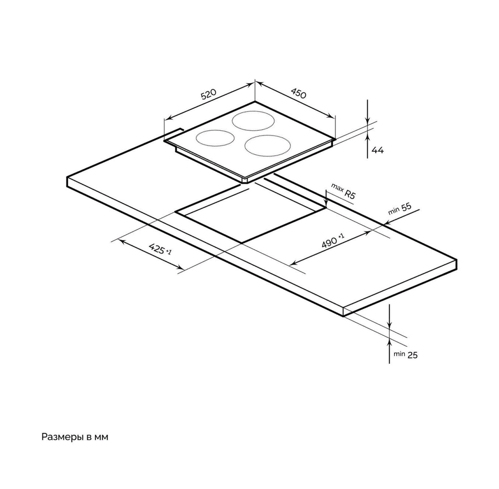 i Характер огранки фаски на внешней стороне варочной панели. Металлические рамки предотвращают забивание монтажных швов крошками и пылью.