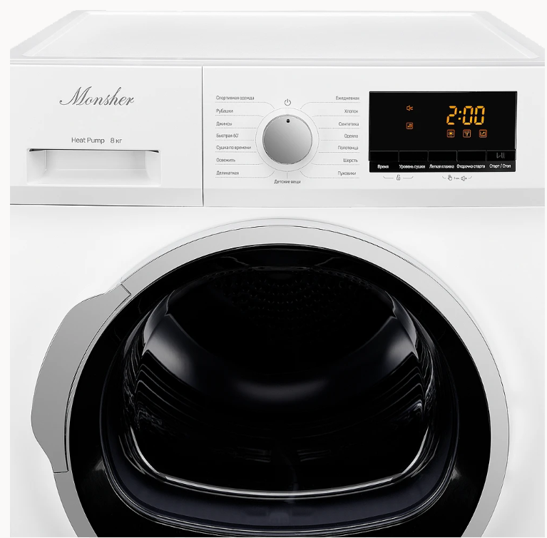 i Белье обрабатывается потоком теплого воздуха в течение определенного времени. Продолжительность сушки зависит от выбранной программы.