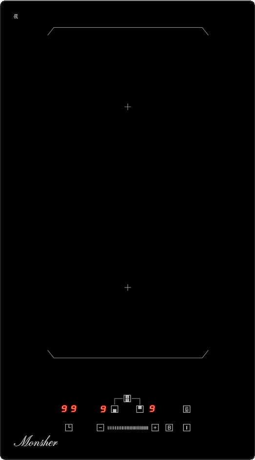 i Расположение панели управления варочной поверхностью относительно конфорок. Если панель расположена сбоку, она будет справа.