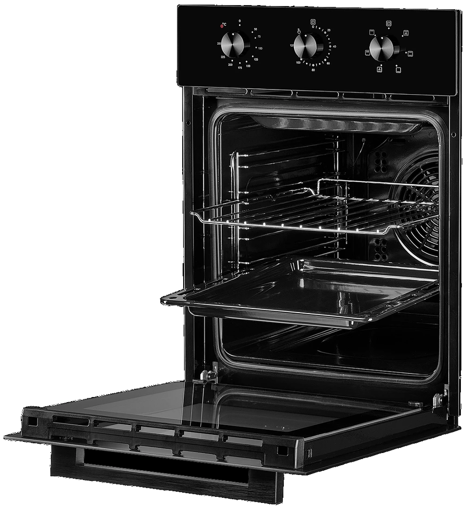 i У духового шкафа может быть газовый или электрический тип питания. Газовые духовки экономичнее, а электрические имеют больше режимов работы.