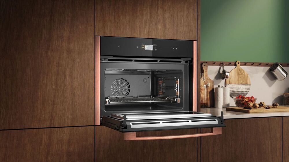 Компактная комбинированная микроволновая печь Flex Design, профили и ручка в комплект не входят, приобретаются в качестве обязательных аксессуаров в 4 цветах по вашему выбору, 20 функций, TFT-дисплей 10 см, 45 л, максимальная микромощность 900 Вт, светодиодное освещение, 1-уровневые телескопические направляющие, Home Connect