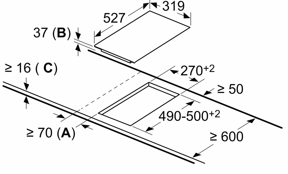 i Характер огранки фаски на внешней стороне варочной панели. Металлические рамки предотвращают забивание монтажных швов крошками и пылью.