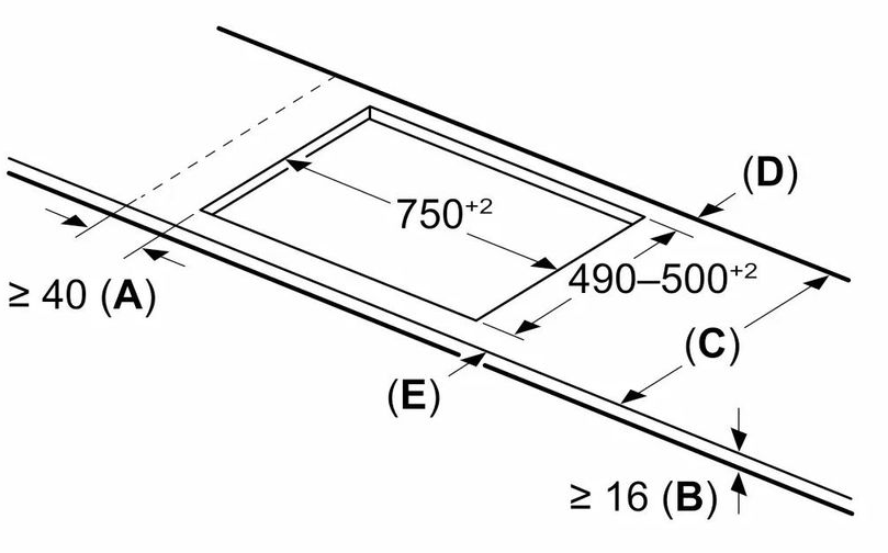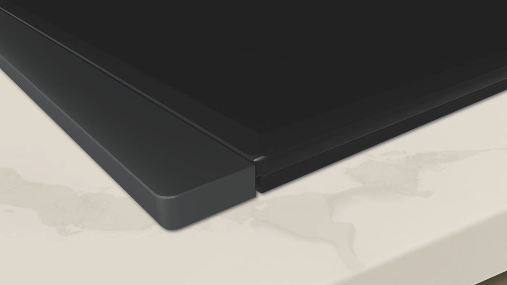 i Характер огранки фаски на внешней стороне варочной панели. Металлические рамки предотвращают забивание монтажных швов крошками и пылью.