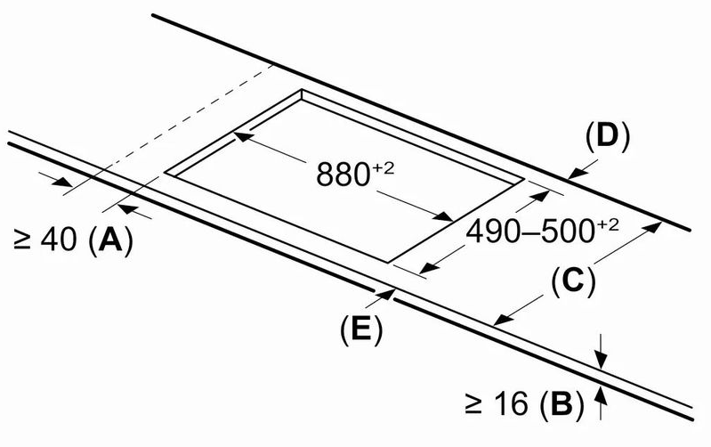 i Характер огранки фаски на внешней стороне варочной панели. Металлические рамки предотвращают забивание монтажных швов крошками и пылью.