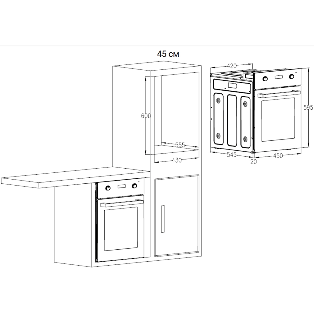 Габариты для встраивания (В х Ш х Г), см