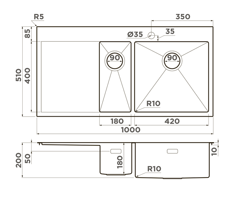 i Наличие и расположение крыла кухонной мойки — слева, справа или с обеих сторон. Крыло оборачиваемой мойки можно расположить с любой стороны.