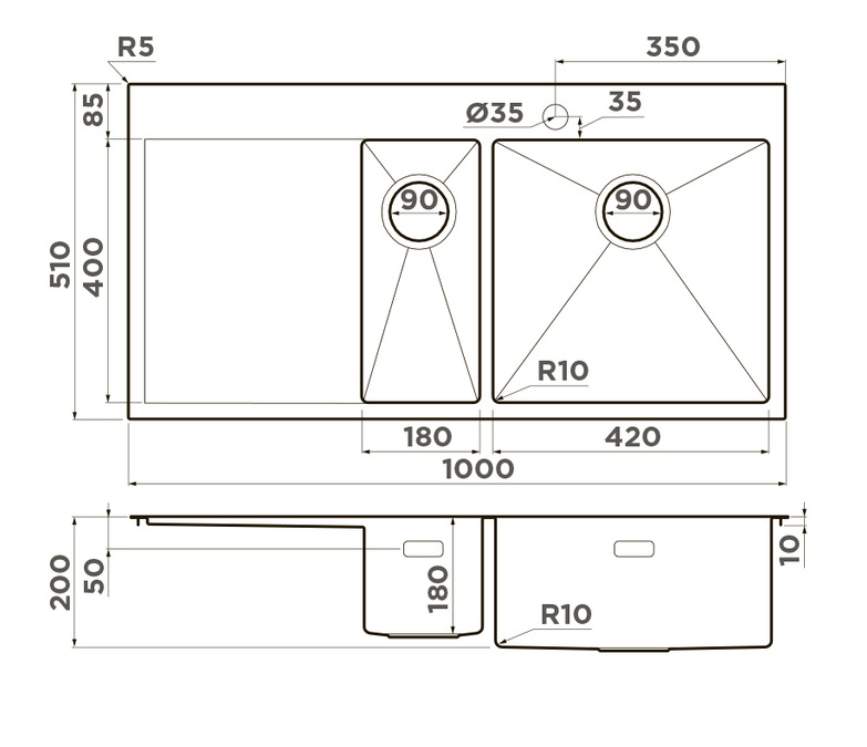 i Наличие и расположение крыла кухонной мойки — слева, справа или с обеих сторон. Крыло оборачиваемой мойки можно расположить с любой стороны.
