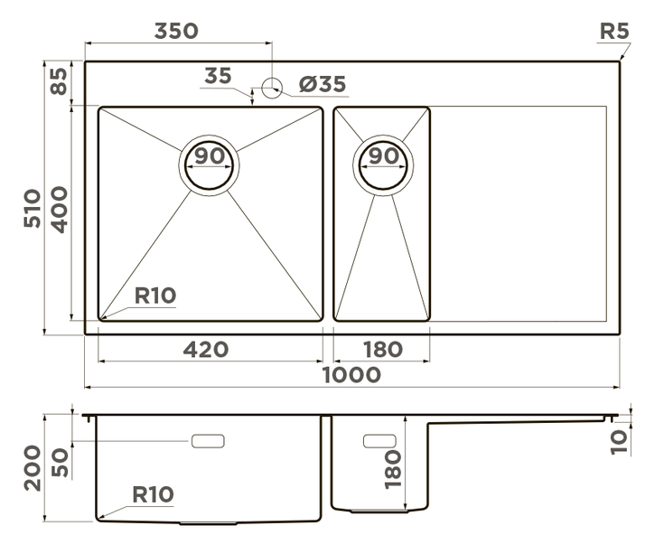 i Наличие и расположение крыла кухонной мойки — слева, справа или с обеих сторон. Крыло оборачиваемой мойки можно расположить с любой стороны.