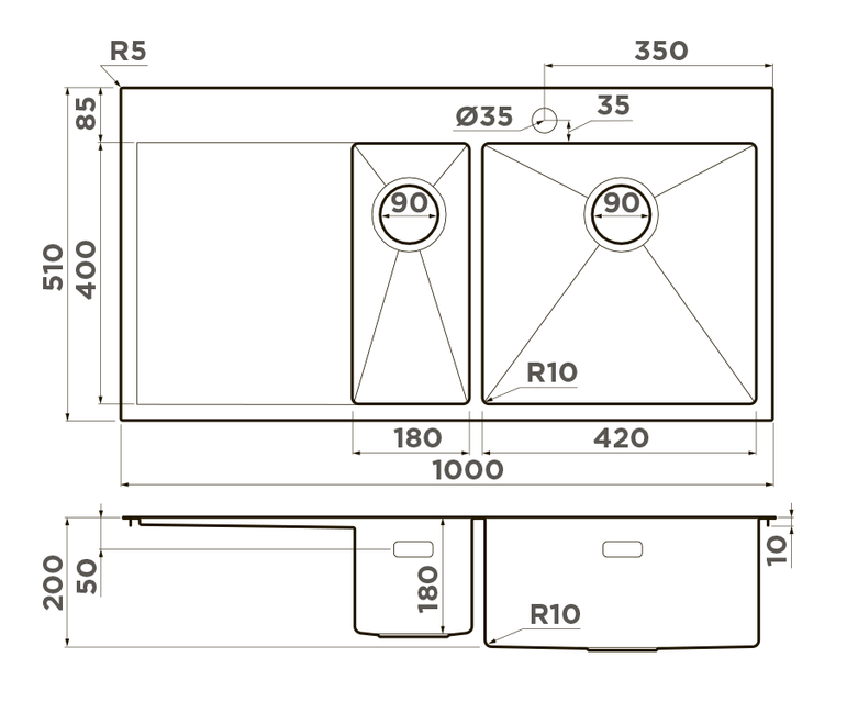 i Обычная кухонная мойка имеет одну глубокую чашу. У современных моделей 2 и более чаш для раздельного использования по своему усмотрению.