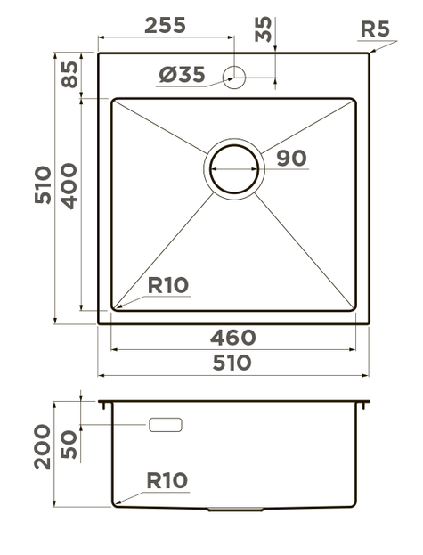 i Расстояние от дна до верхней кромки чаши мойки. Оптимальная глубина — 15-18 см. Чем глубже мойка, тем меньше брызг попадет наружу.