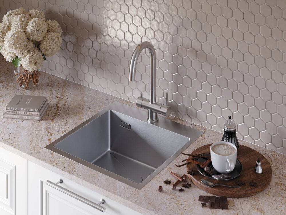 i Расстояние от дна до верхней кромки чаши мойки. Оптимальная глубина — 15-18 см. Чем глубже мойка, тем меньше брызг попадет наружу.