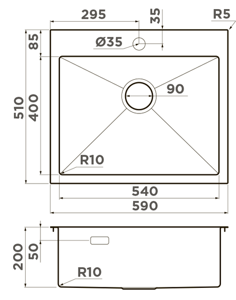 i Расстояние от дна до верхней кромки чаши мойки. Оптимальная глубина — 15-18 см. Чем глубже мойка, тем меньше брызг попадет наружу.