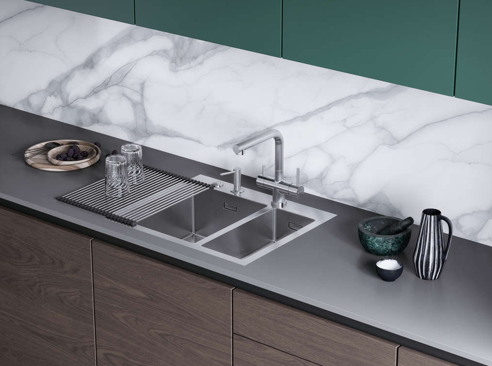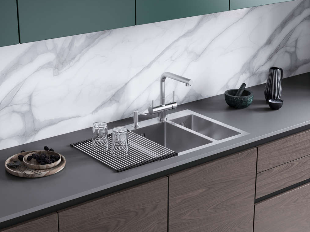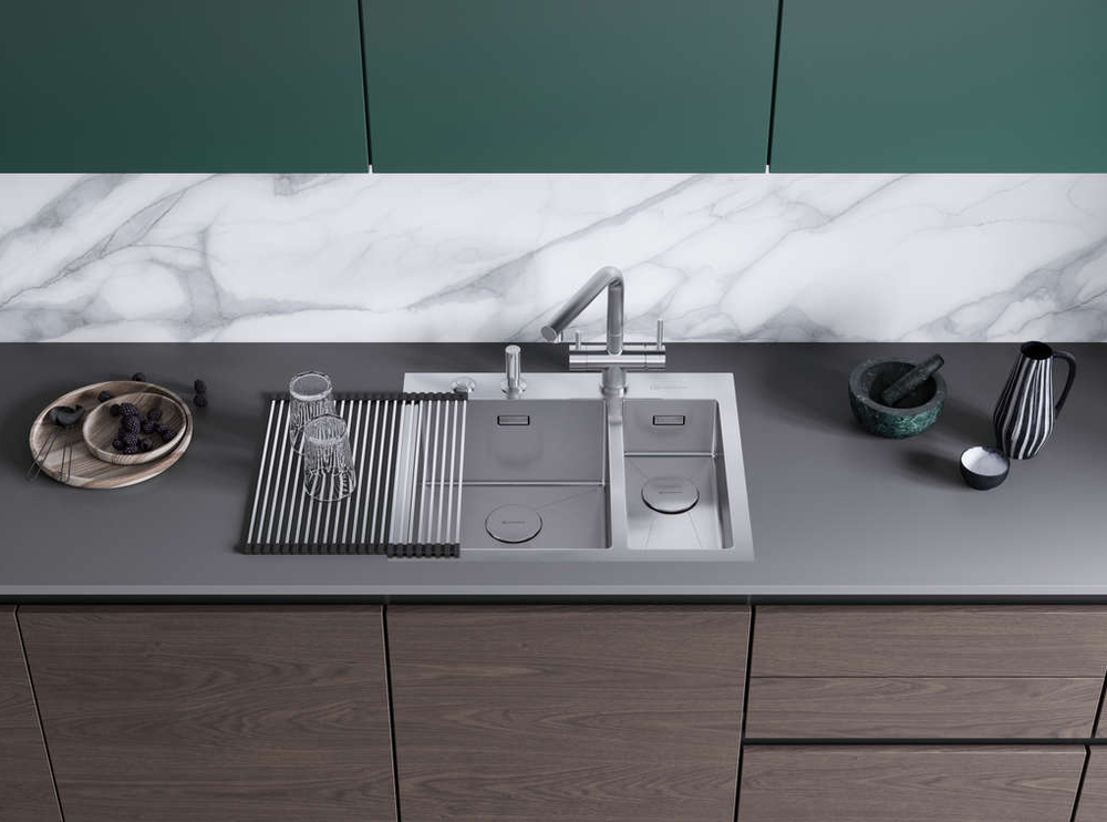 i Кроме основной чаши у кухонной мойки может быть одна или две дополнительные чаши меньшего объема. В одну из них можно встроить измельчитель.