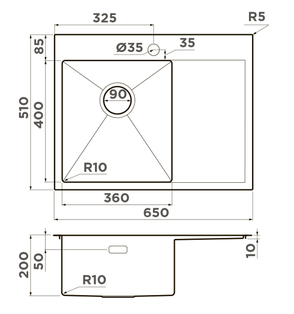 i Расстояние от дна до верхней кромки чаши мойки. Оптимальная глубина — 15-18 см. Чем глубже мойка, тем меньше брызг попадет наружу.