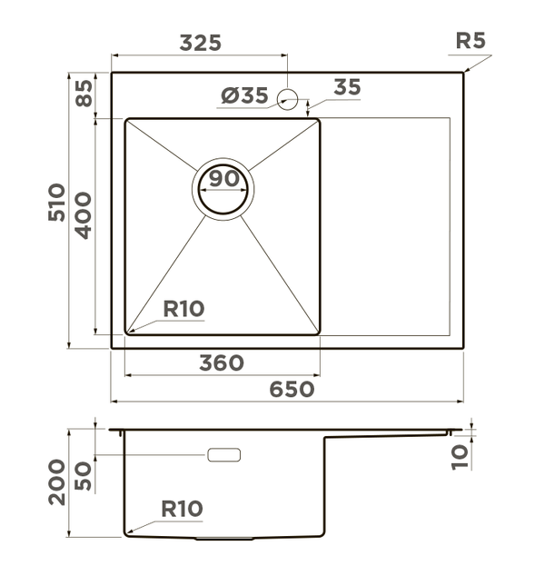 i Расстояние от дна до верхней кромки чаши мойки. Оптимальная глубина — 15-18 см. Чем глубже мойка, тем меньше брызг попадет наружу.