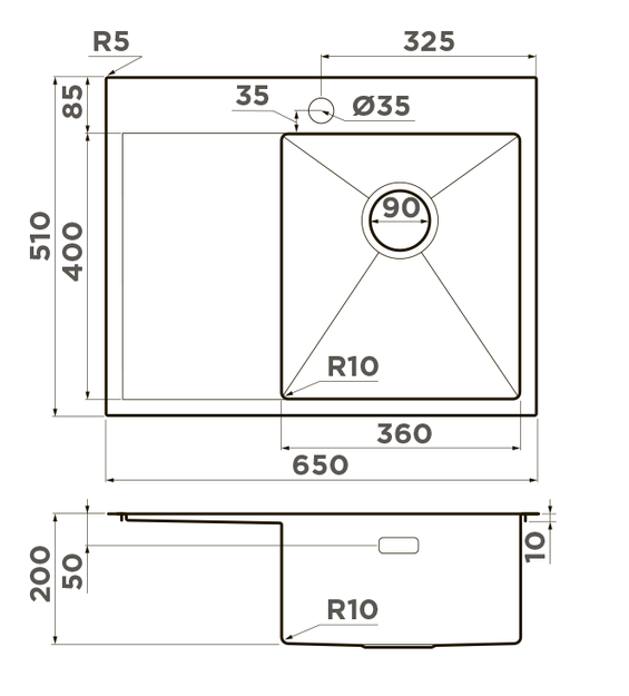 i Расстояние от дна до верхней кромки чаши мойки. Оптимальная глубина — 15-18 см. Чем глубже мойка, тем меньше брызг попадет наружу.