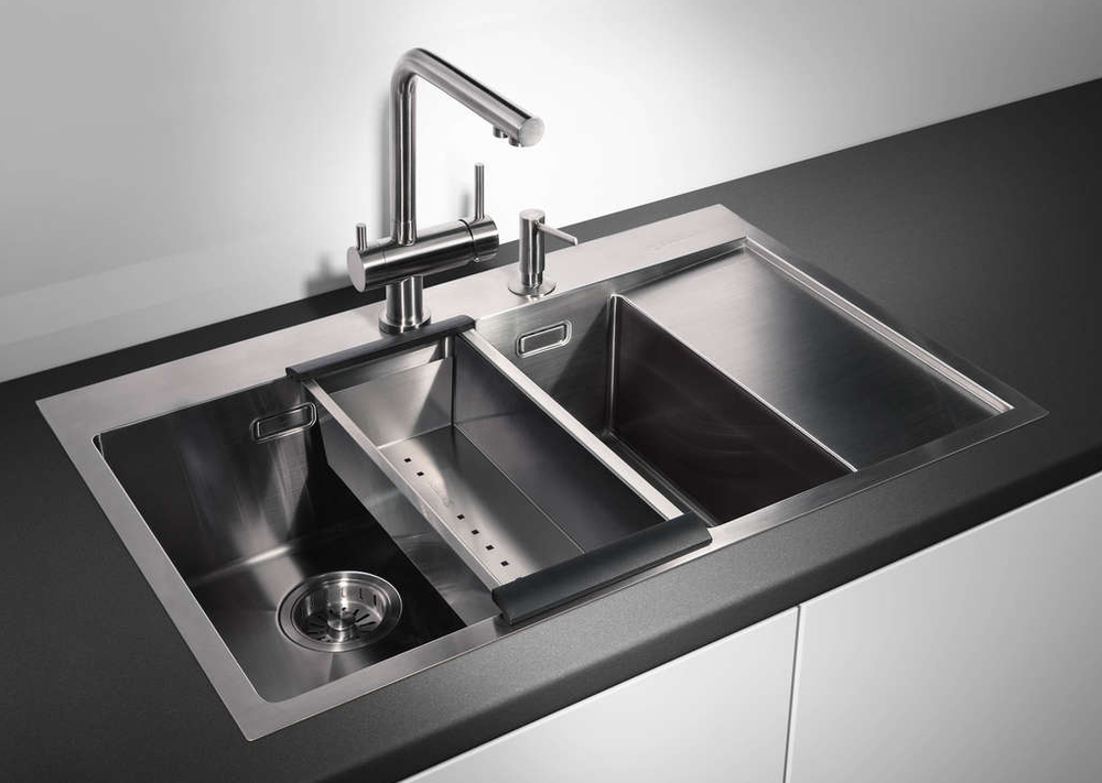 i Кроме основной чаши у кухонной мойки может быть одна или две дополнительные чаши меньшего объема. В одну из них можно встроить измельчитель.