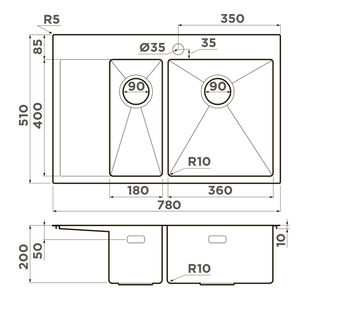 i Наличие и расположение крыла кухонной мойки — слева, справа или с обеих сторон. Крыло оборачиваемой мойки можно расположить с любой стороны.