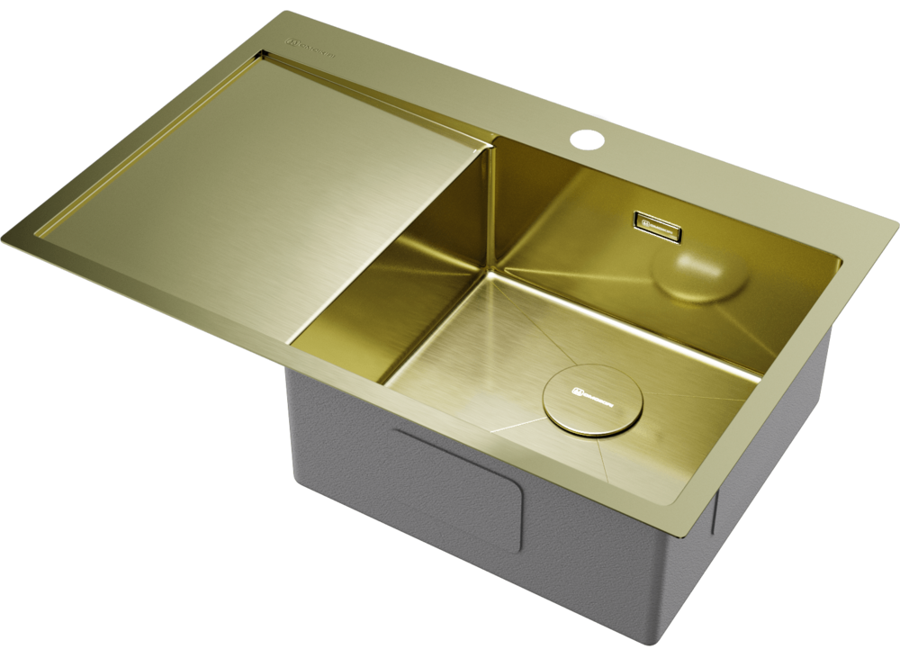 Omoikiri Akisame 78-LG-R, мойка, нержавеющая сталь/светлое золото, чаша справа