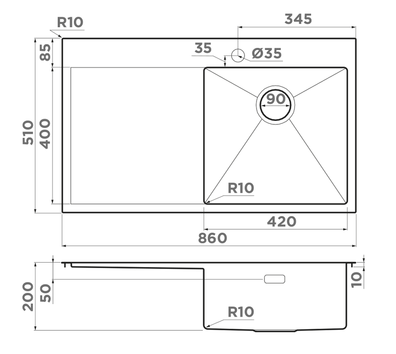 Omoikiri Akisame 86-IN-R, мойка, нержавеющая сталь, чаша справа