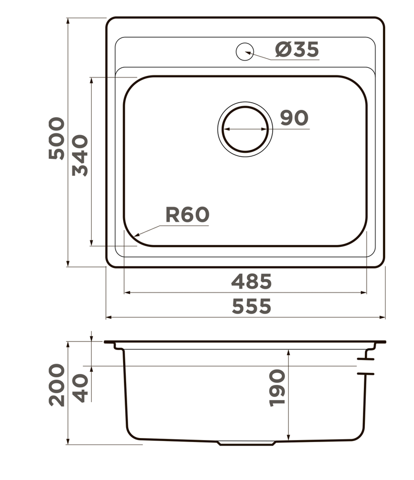 i Расстояние от дна до верхней кромки чаши мойки. Оптимальная глубина — 15-18 см. Чем глубже мойка, тем меньше брызг попадет наружу.
