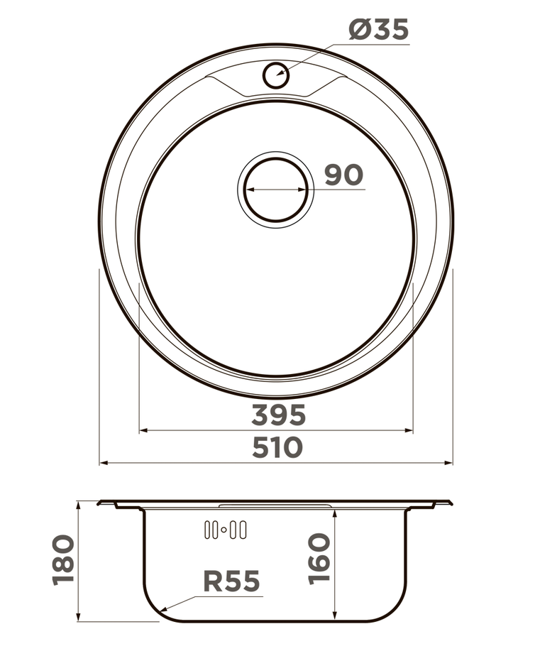 i Расстояние от дна до верхней кромки чаши мойки. Оптимальная глубина — 15-18 см. Чем глубже мойка, тем меньше брызг попадет наружу.