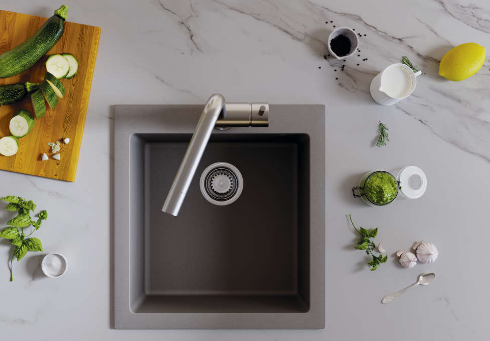 i Расстояние от дна до верхней кромки чаши мойки. Оптимальная глубина — 15-18 см. Чем глубже мойка, тем меньше брызг попадет наружу.