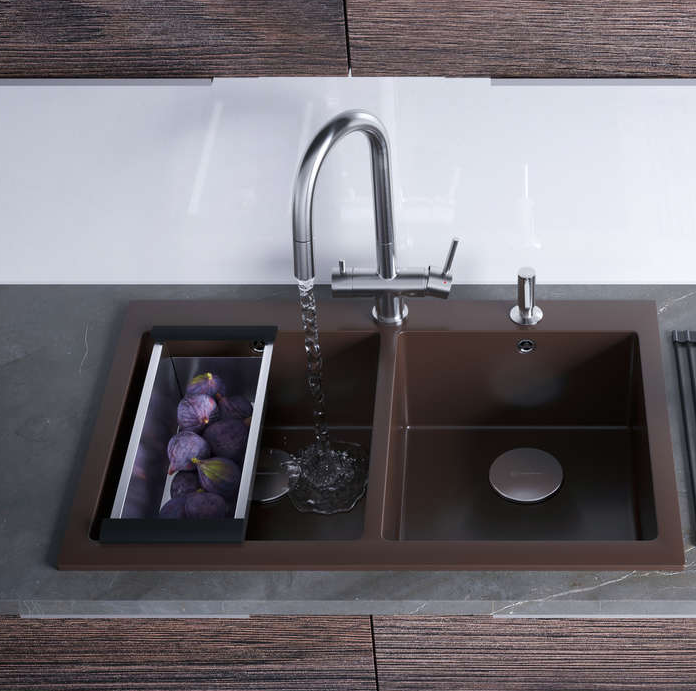 i Кроме основной чаши у кухонной мойки может быть одна или две дополнительные чаши меньшего объема. В одну из них можно встроить измельчитель.