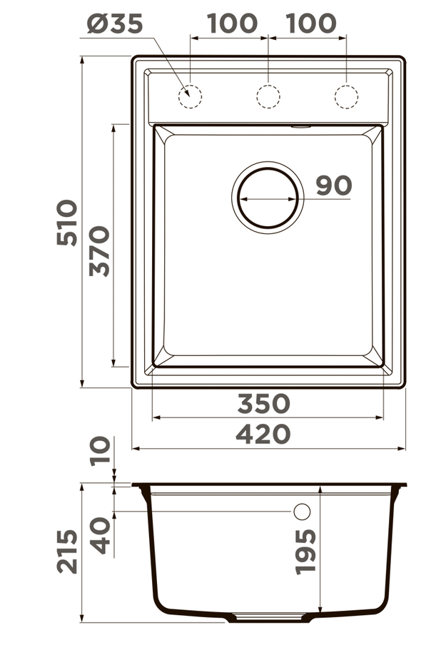 i Расстояние от дна до верхней кромки чаши мойки. Оптимальная глубина — 15-18 см. Чем глубже мойка, тем меньше брызг попадет наружу.