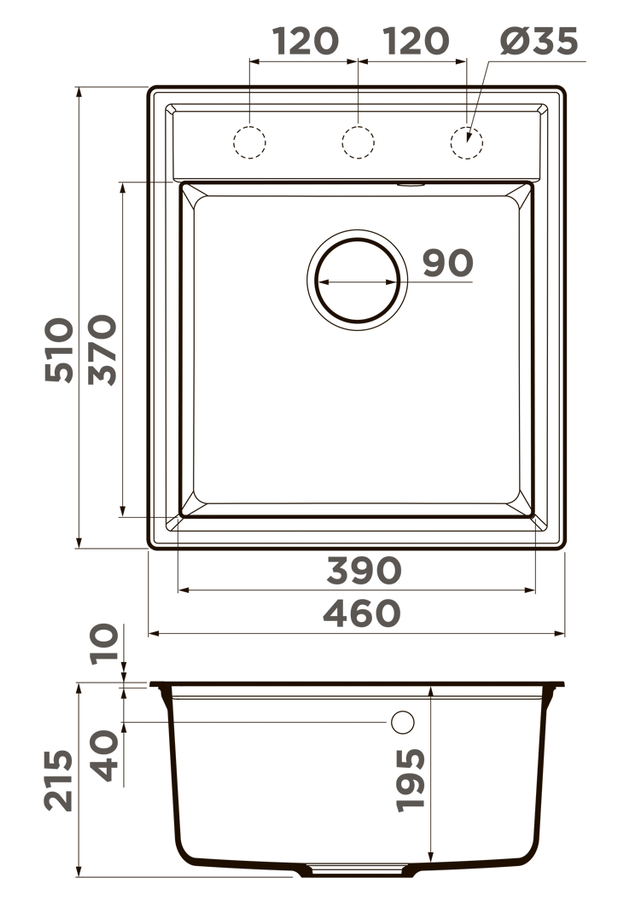 i Расстояние от дна до верхней кромки чаши мойки. Оптимальная глубина — 15-18 см. Чем глубже мойка, тем меньше брызг попадет наружу.