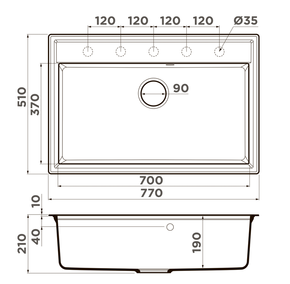 i Расстояние от дна до верхней кромки чаши мойки. Оптимальная глубина — 15-18 см. Чем глубже мойка, тем меньше брызг попадет наружу.