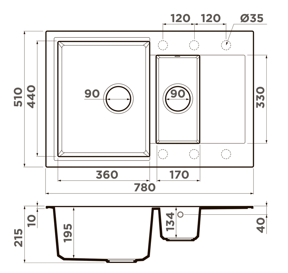 i Расстояние от дна до верхней кромки чаши мойки. Оптимальная глубина — 15-18 см. Чем глубже мойка, тем меньше брызг попадет наружу.