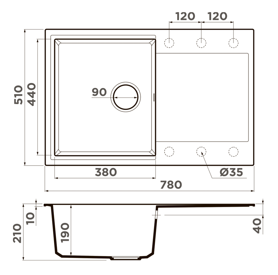 i Расстояние от дна до верхней кромки чаши мойки. Оптимальная глубина — 15-18 см. Чем глубже мойка, тем меньше брызг попадет наружу.