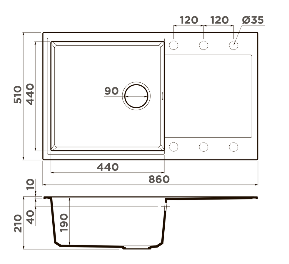 i Расстояние от дна до верхней кромки чаши мойки. Оптимальная глубина — 15-18 см. Чем глубже мойка, тем меньше брызг попадет наружу.