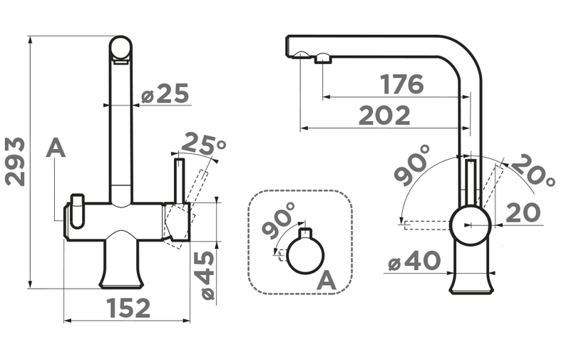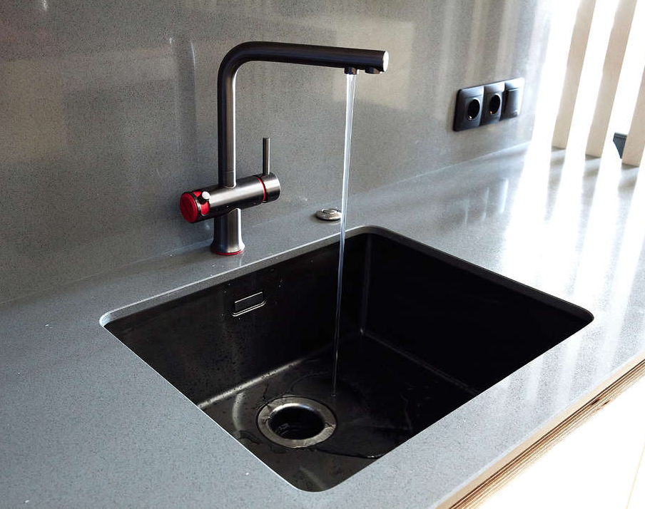 i Встроенная в кран насадка на длинном гибком шланге с металлической оплеткой. Насадки с кнопкой могут переключать обычный излив воды на душ.