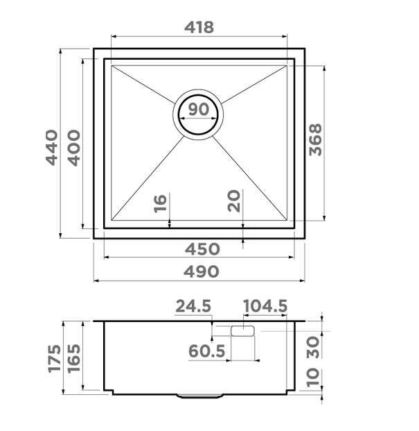 i Расстояние от дна до верхней кромки чаши мойки. Оптимальная глубина — 15-18 см. Чем глубже мойка, тем меньше брызг попадет наружу.