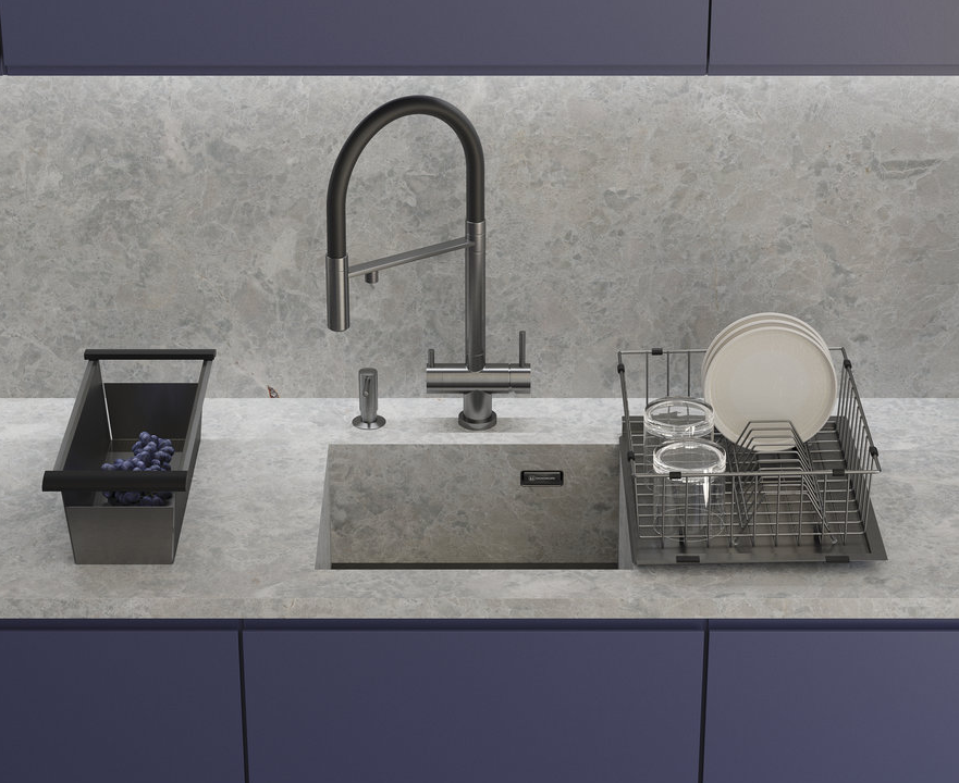 i Кроме основной чаши у кухонной мойки может быть одна или две дополнительные чаши меньшего объема. В одну из них можно встроить измельчитель.
