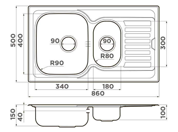 i Расстояние от дна до верхней кромки чаши мойки. Оптимальная глубина — 15-18 см. Чем глубже мойка, тем меньше брызг попадет наружу.
