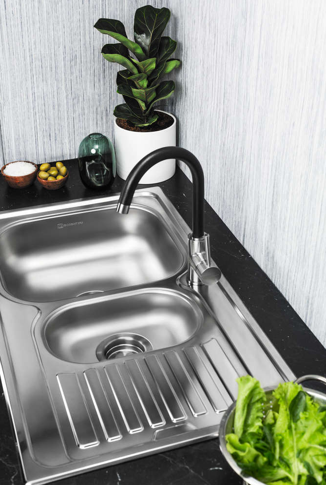 i Кроме основной чаши у кухонной мойки может быть одна или две дополнительные чаши меньшего объема. В одну из них можно встроить измельчитель.