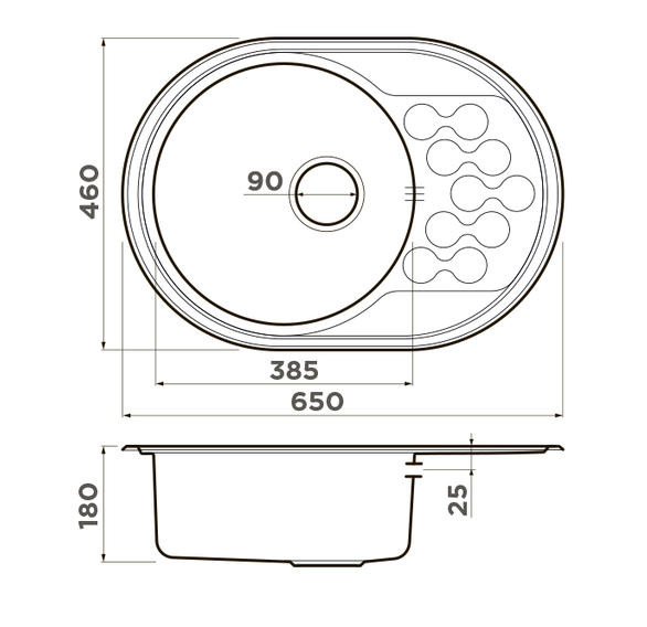 i Расстояние от дна до верхней кромки чаши мойки. Оптимальная глубина — 15-18 см. Чем глубже мойка, тем меньше брызг попадет наружу.