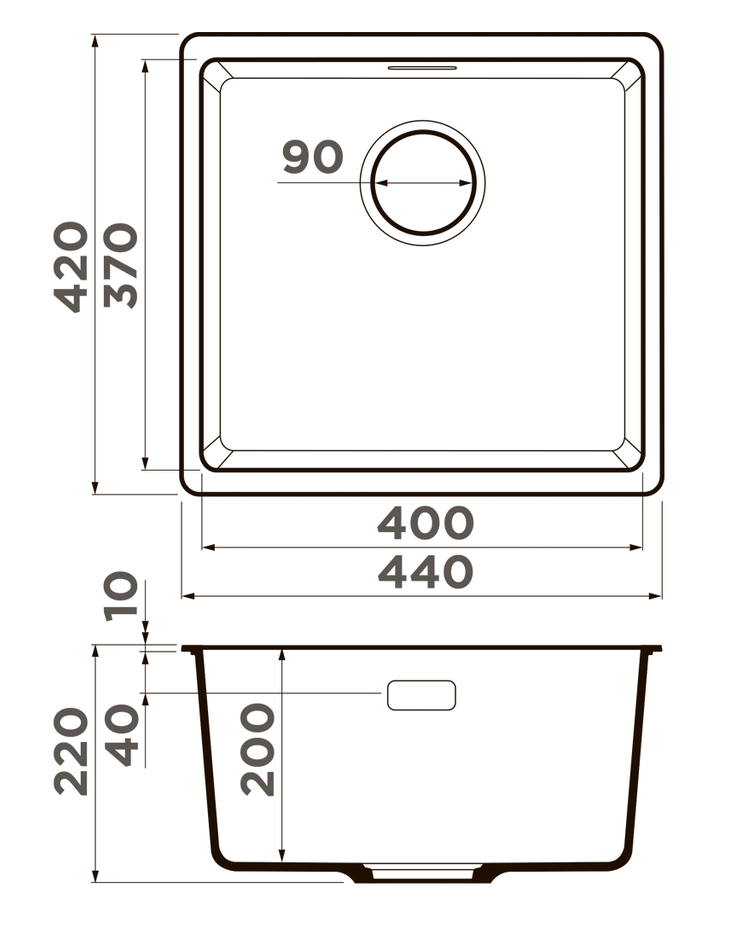 i Расстояние от дна до верхней кромки чаши мойки. Оптимальная глубина — 15-18 см. Чем глубже мойка, тем меньше брызг попадет наружу.