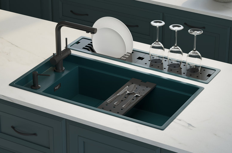 i Кроме основной чаши у кухонной мойки может быть одна или две дополнительные чаши меньшего объема. В одну из них можно встроить измельчитель.