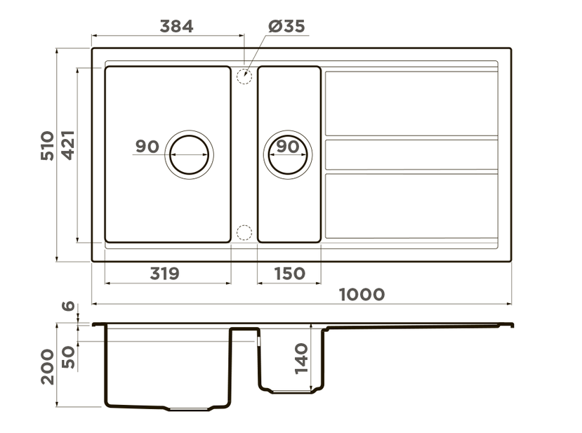 i Расстояние от дна до верхней кромки чаши мойки. Оптимальная глубина — 15-18 см. Чем глубже мойка, тем меньше брызг попадет наружу.