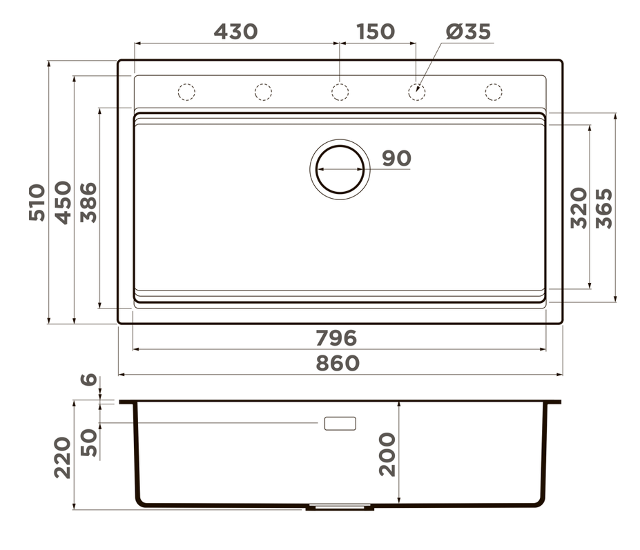 i Расстояние от дна до верхней кромки чаши мойки. Оптимальная глубина — 15-18 см. Чем глубже мойка, тем меньше брызг попадет наружу.