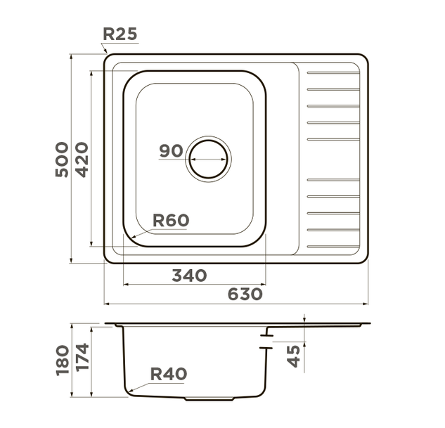 i Расстояние от дна до верхней кромки чаши мойки. Оптимальная глубина — 15-18 см. Чем глубже мойка, тем меньше брызг попадет наружу.