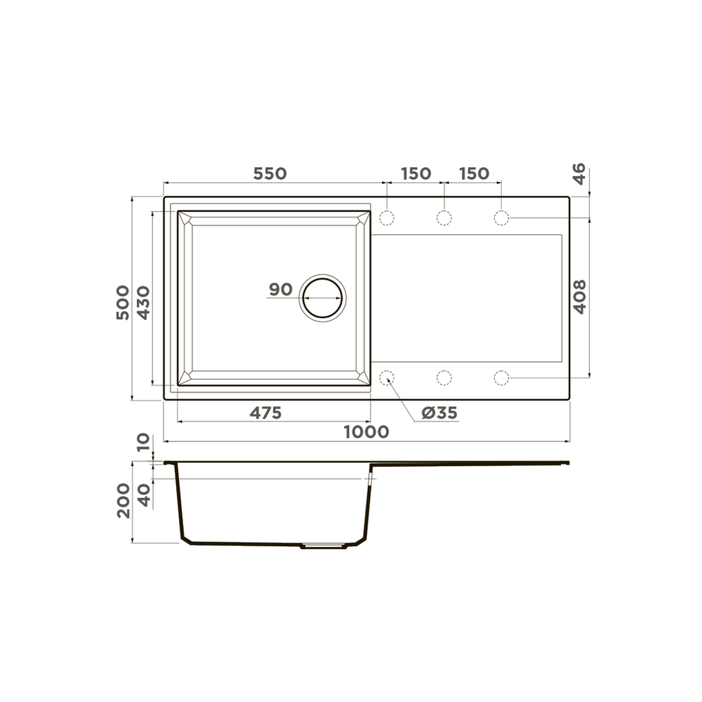 i Расстояние от дна до верхней кромки чаши мойки. Оптимальная глубина — 15-18 см. Чем глубже мойка, тем меньше брызг попадет наружу.