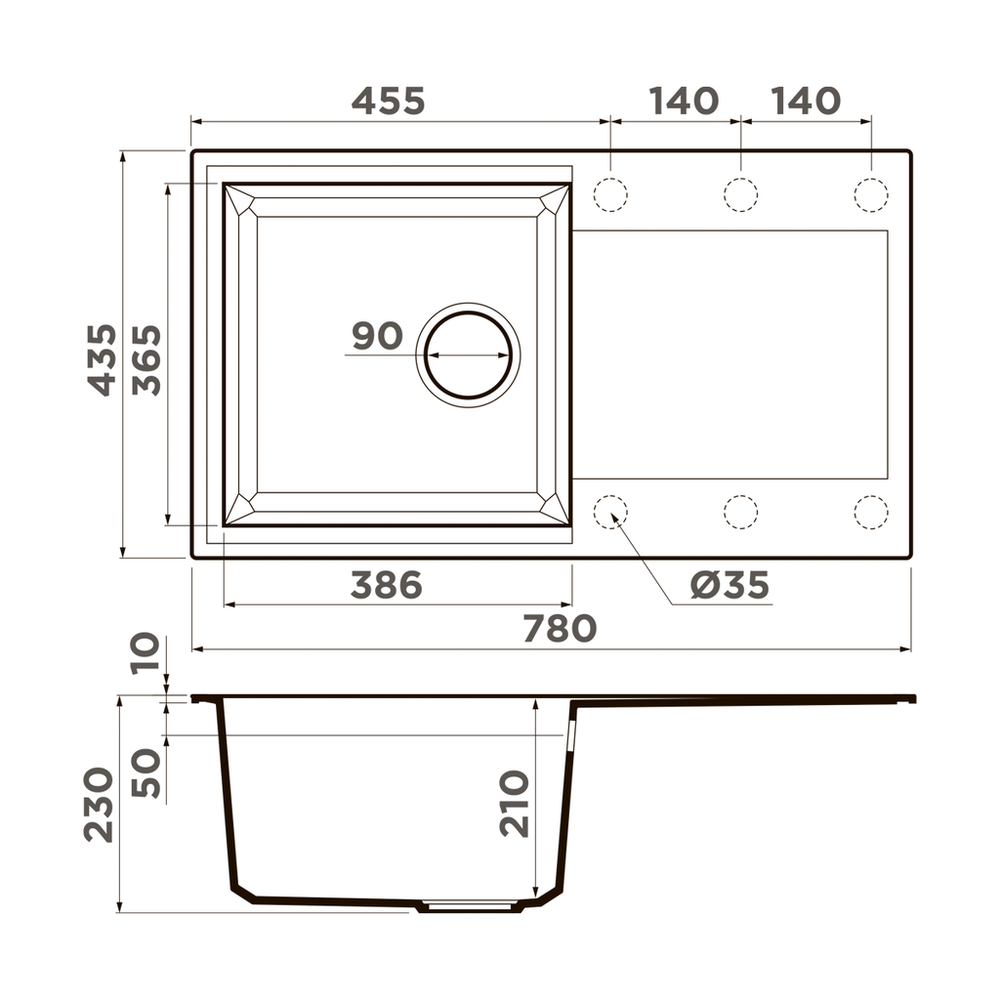 i Расстояние от дна до верхней кромки чаши мойки. Оптимальная глубина — 15-18 см. Чем глубже мойка, тем меньше брызг попадет наружу.