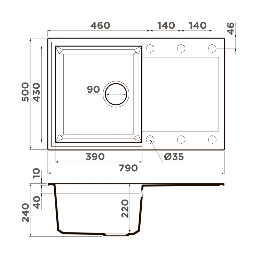 i Расстояние от дна до верхней кромки чаши мойки. Оптимальная глубина — 15-18 см. Чем глубже мойка, тем меньше брызг попадет наружу.