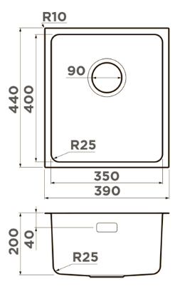i Расстояние от дна до верхней кромки чаши мойки. Оптимальная глубина — 15-18 см. Чем глубже мойка, тем меньше брызг попадет наружу.